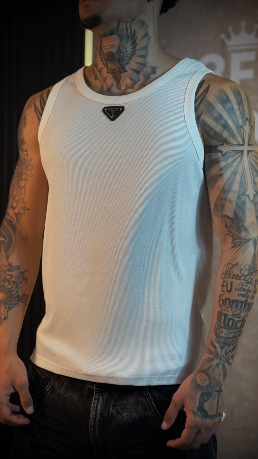 Regata Canelada Prada Logo frontal - Importada - Branca