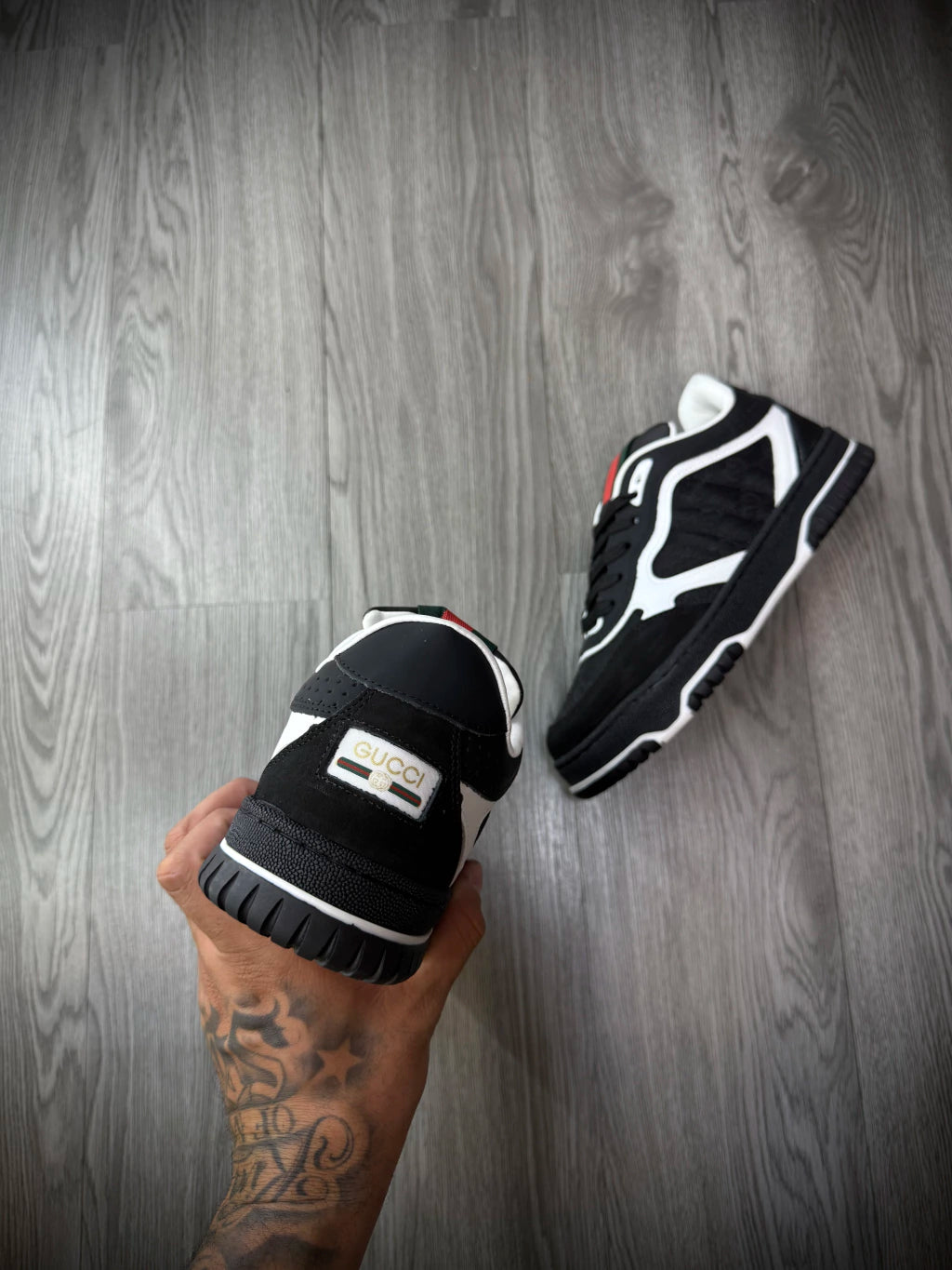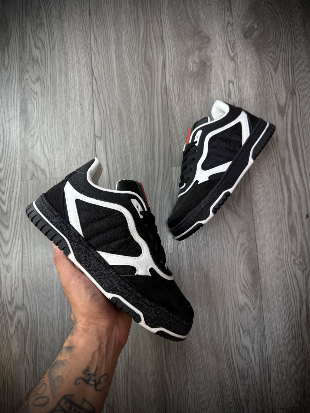 Tênis Importado Gucci | Monograma - Detalhe Listra Vermelha e Verde - PRETO
